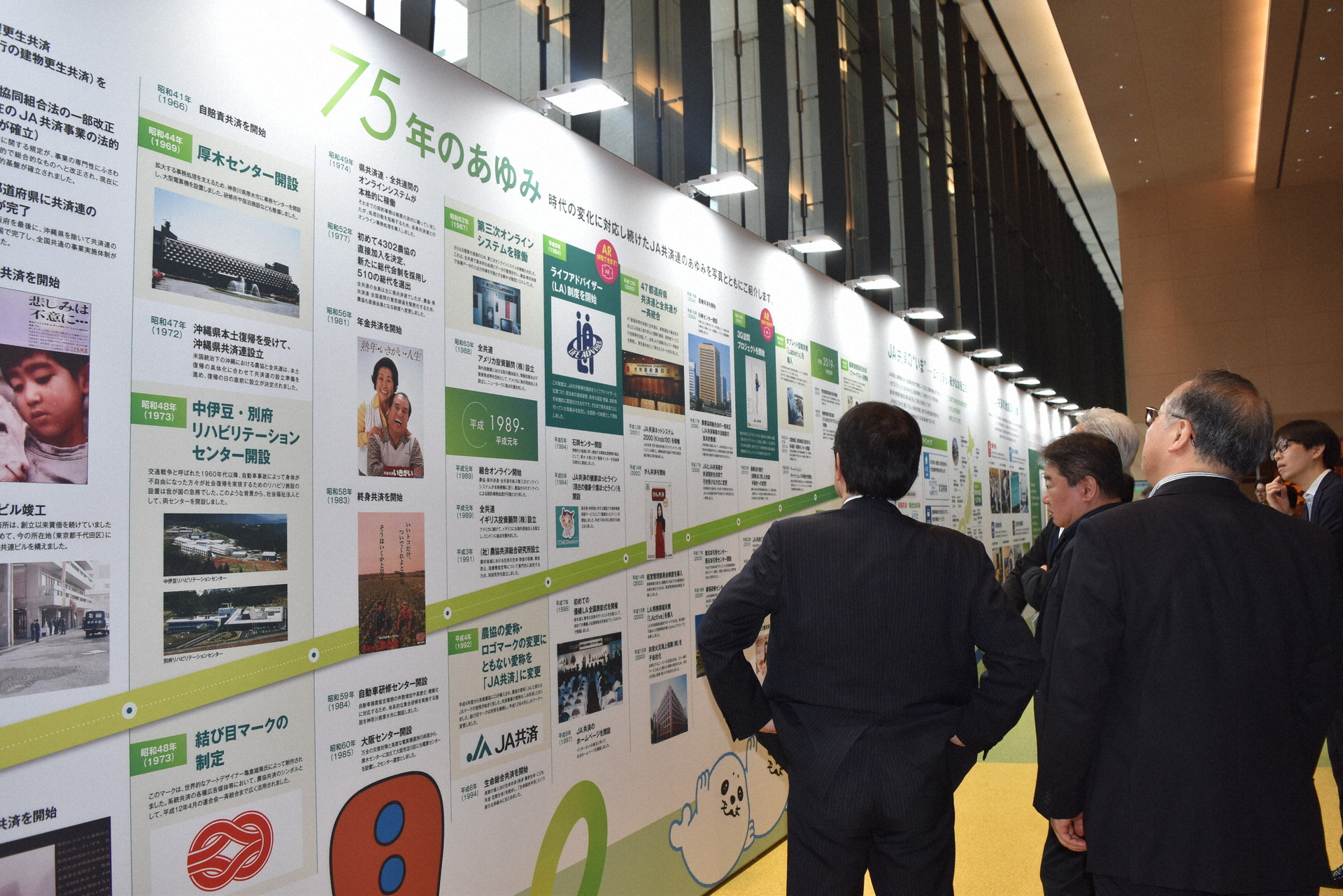 今年1月に創立75周年を迎えたJA共済連(東京都千代田区)は3月17日、その軌跡をまとめた記念展示「共済プラーザ」を公開した=写真。