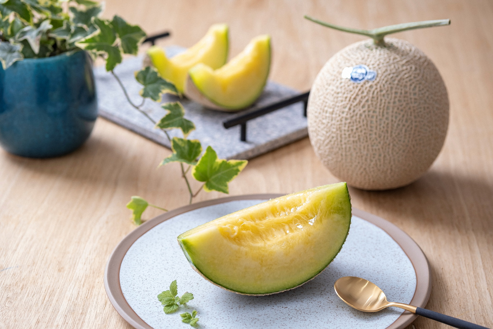 菊川市内の温室で育てられている「アローマメロン」は、全国にも流通しているアールスメロンで同市の特産物の一つだ。