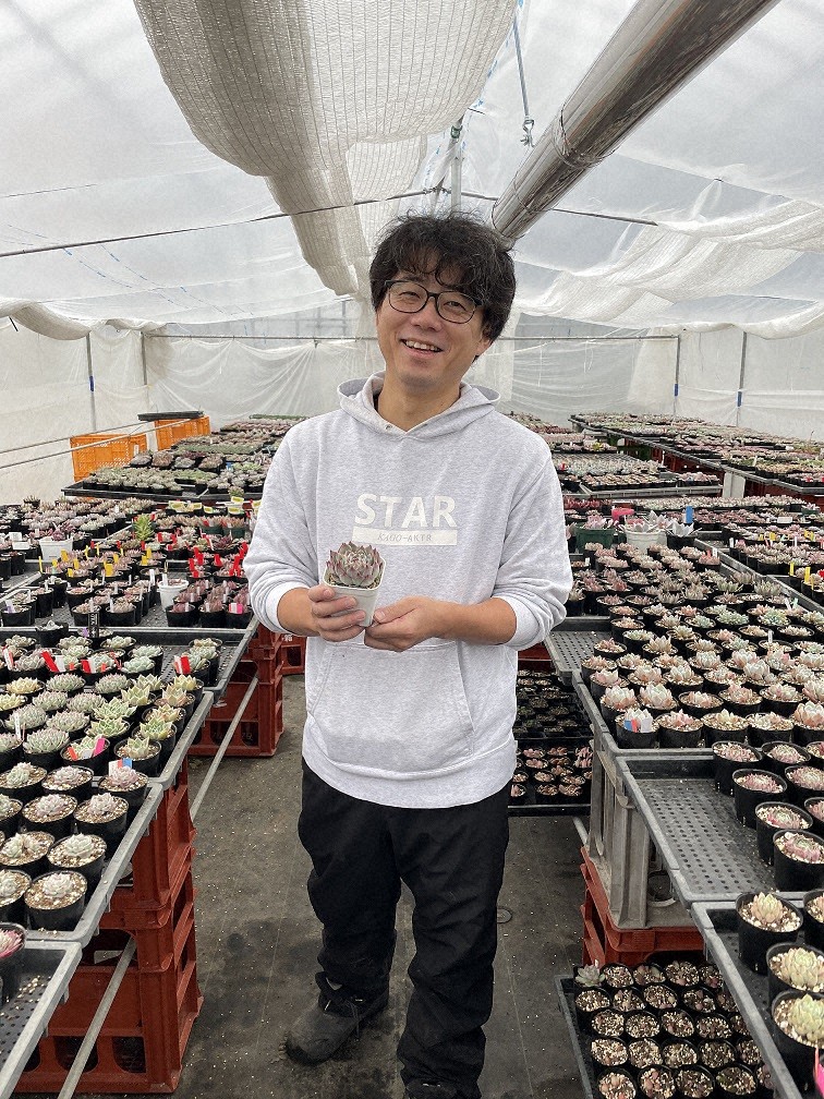 大仙市で鍼灸(しんきゅう)整骨院「絆」の院長を務める佐藤拓朗さん(39)は「エケベリア」の栽培に取り組んでいる。