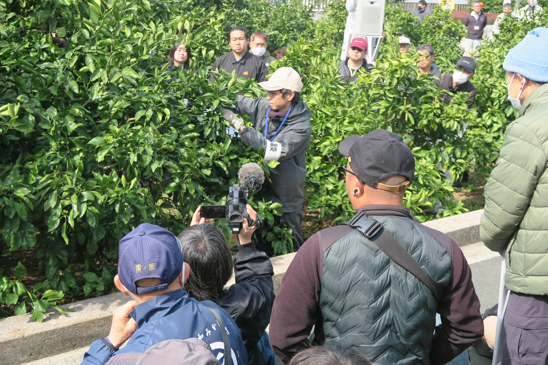 セミナーでは、菊地毅洋所長による「気候変動を踏まえた生産対策」の講演のほか、炭酸カルシウム剤散布による柑橘類の日焼け症対策技