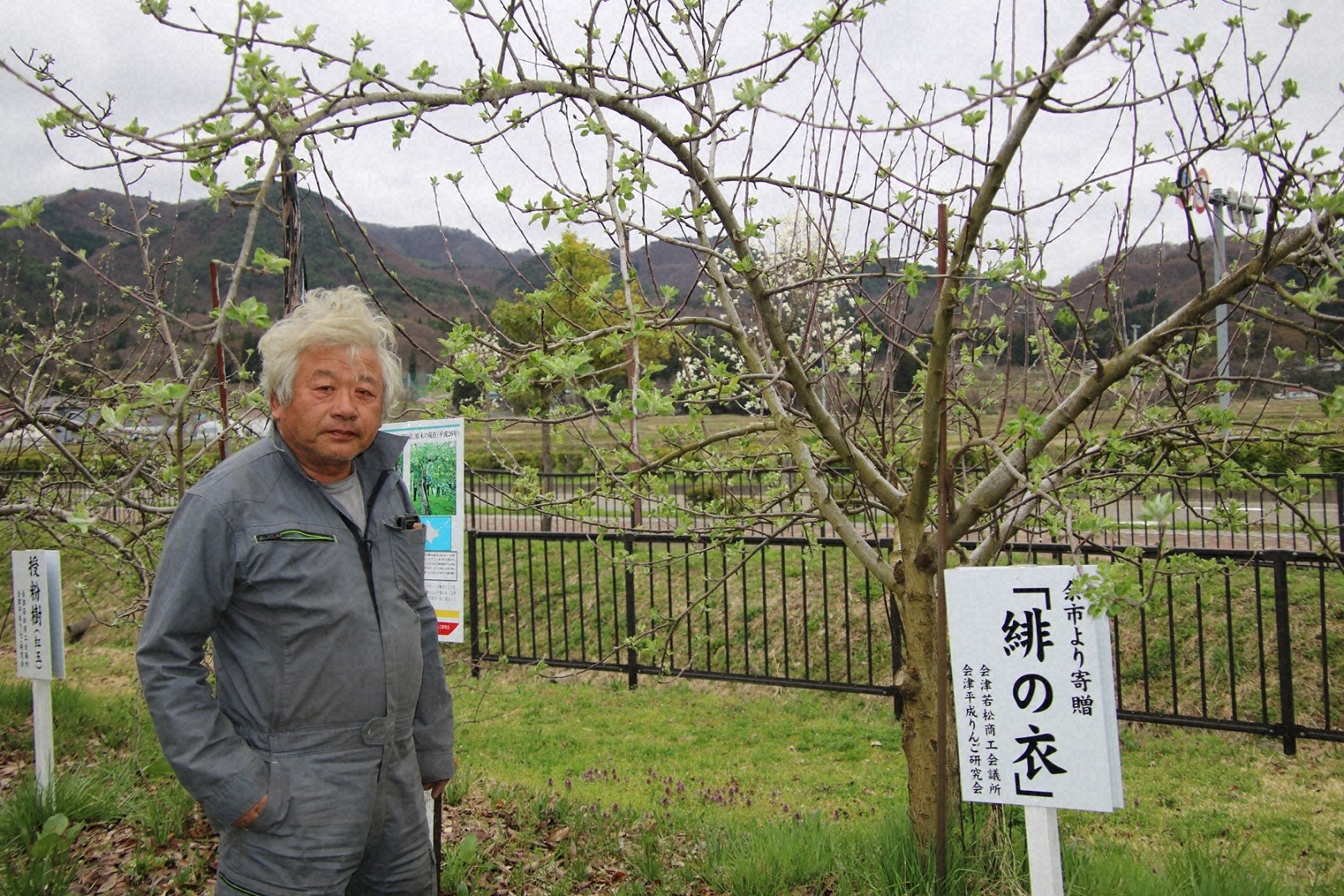 会津藩士ゆかりのリンゴ品種「緋(ひ)の衣(ころも)」は、会津平成リンゴ研究会(白井康友会長、68)により歴史とともに伝え継がれている。